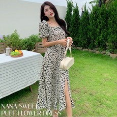 따봉오빠 여성용 샤랄라 플라워 패턴 셔링 스트랩 반팔 원피스 JNH1132